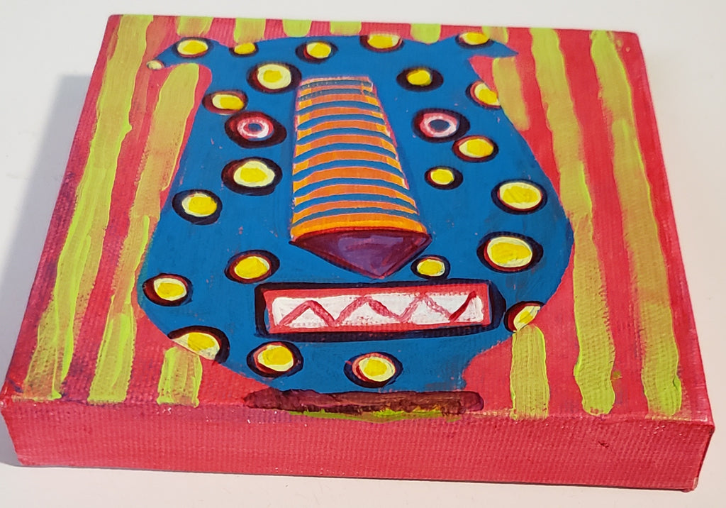Today’s painting. What is it? I’m assuming a dog? I don’t really know. So I’m going to opine that it is a self portrait by Karen. Perhaps she will let us know what it is supposed to be. If it catches your fancy, you can find this 5”x5” painting here for $45.