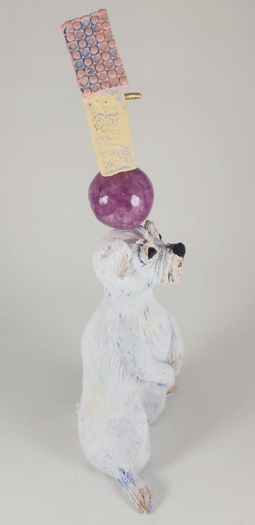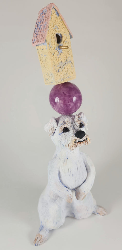 I love making sculptures. I make a lot of custom sculptures as well. Anything you can dream up, I can make, I love an artistic challenge! Dogs, giraffes and cows are just some of my most popular items. Oh, and the possums! White Dog Totem is a one of a kind, handbuilt ceramic sculpture and measures 13.5" x 6" x 5".