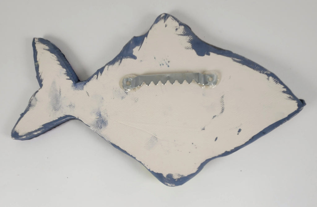 Something's Fishy indeed! Each fish hangs by a sawtooth hanger glued onto the back. This small Ouija fish is approximately 8" x 4.5" x 1/2". Start your own home school today!