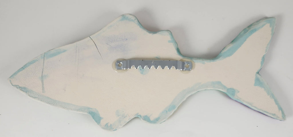 Something's Fishy indeed! Each fish hangs by a sawtooth hanger glued onto the back. This Teal fish is approximately 10" x 4.5" x 1/2". Start your own home school today!